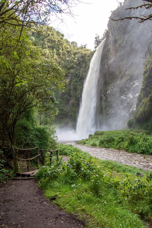 Fue interesante descubrir durante la última parte del trayecto –a los tiempos- como poco a poco iba apareciendo la “trepada” que nos aguardaba. Ya que a la distancia aparecían unos pequeños puntitos de un grupo anterior que ya recorrían el serpenteante camino. El transporte nos dejó junto a iglesia. Arreglamos un poco nuestras mochilas, buff estilo karate y a caminar. Así antes de iniciar el sendero hay unas pequeñas tiendas donde puedes comprar agua o algún snack.