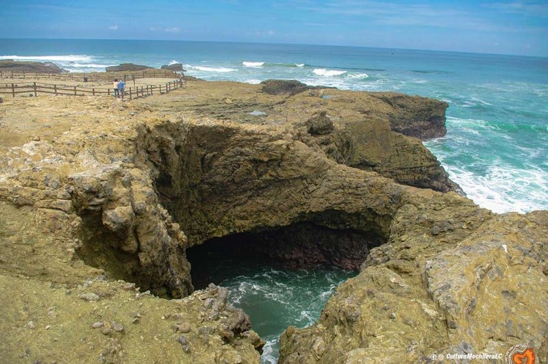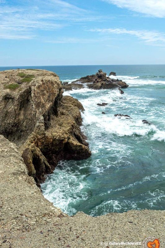 Una vez con nuestras cosas seguras, ropa de playa y cámara en mano directo a la “Chocolatera”. Puedes ir a este punto en tren turístico por $10, en taxi por $2 o caminando que es gratis pero si es un poco largo. Te recomendamos ir en taxi de ida y de regreso puedes regresar por el sendero hacia «la Lobería». Es preferible ir en fechas que no sean feriado para evitar gastar demás. Al pensar en la “Chocolatera”de una se te viene la idea deliciosa del chocolate, pero no es nada de dulces. Se la denomina así por la fuerza de las olas del océano Pacífico hacia el acantilado de la costa y este golpe contra la roca genera una espuma que rodea por varios minutos todo el mar, se ve espectacular.